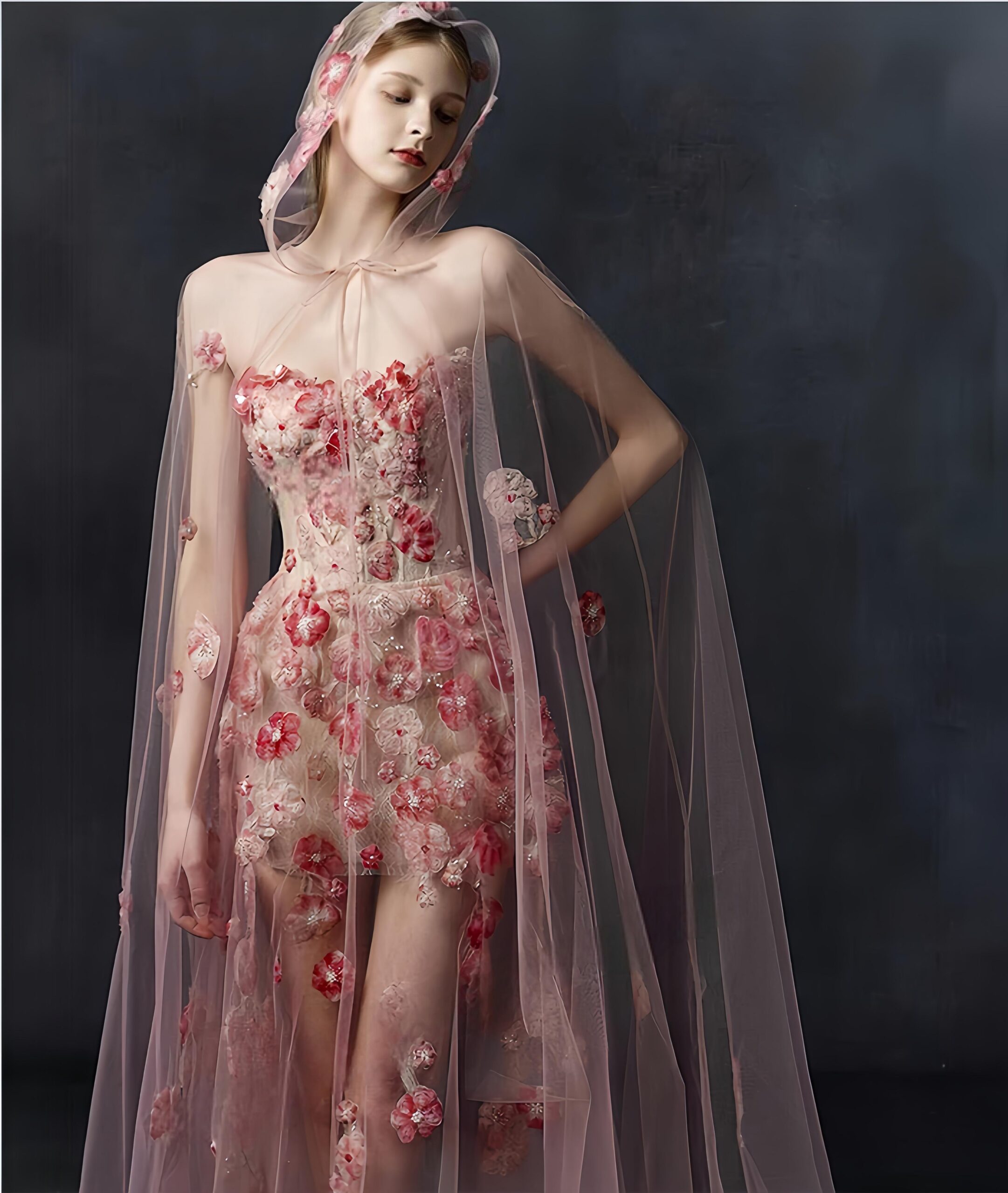 The flowers of the whole spring are sewn into the curve of the skirt