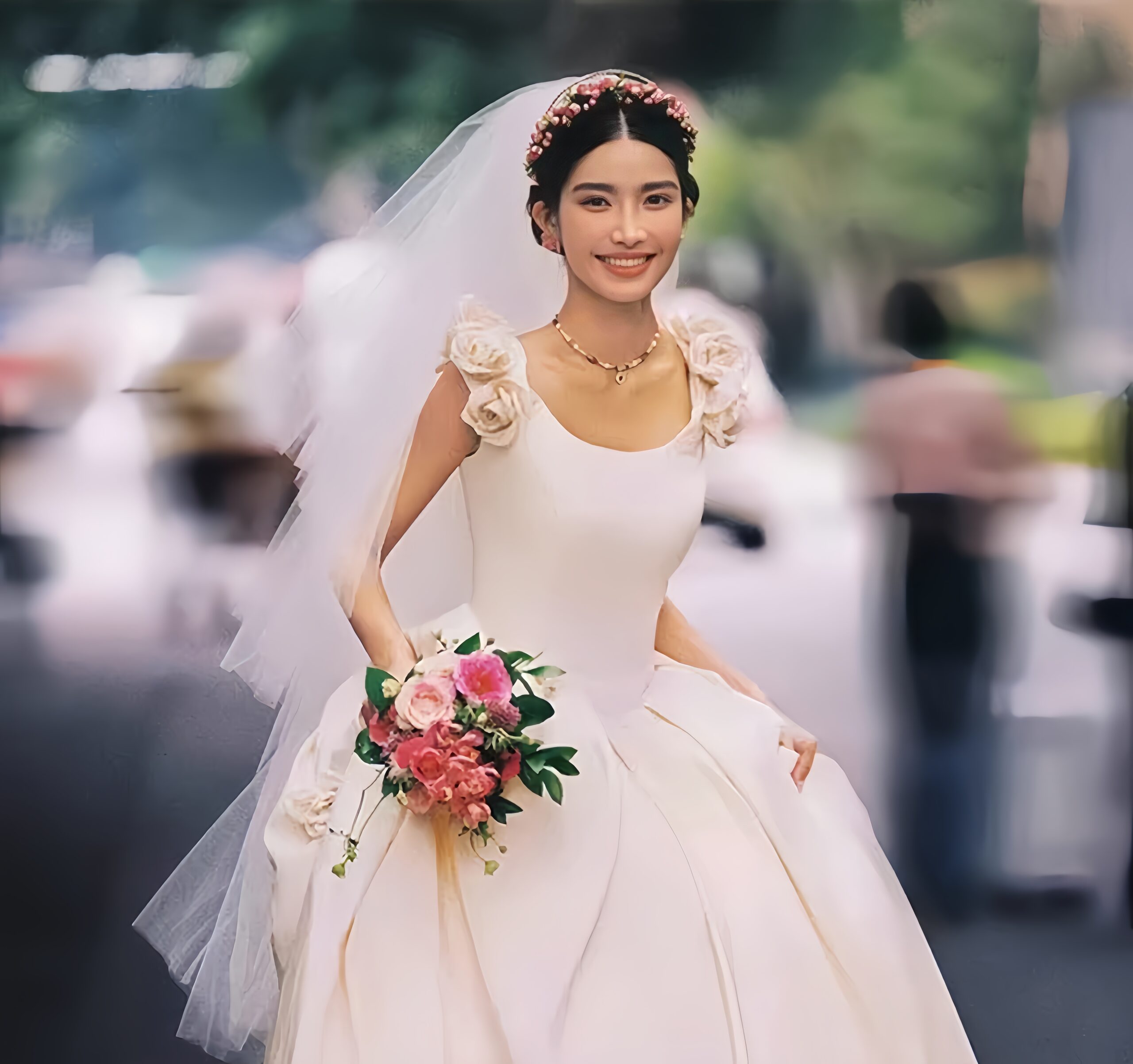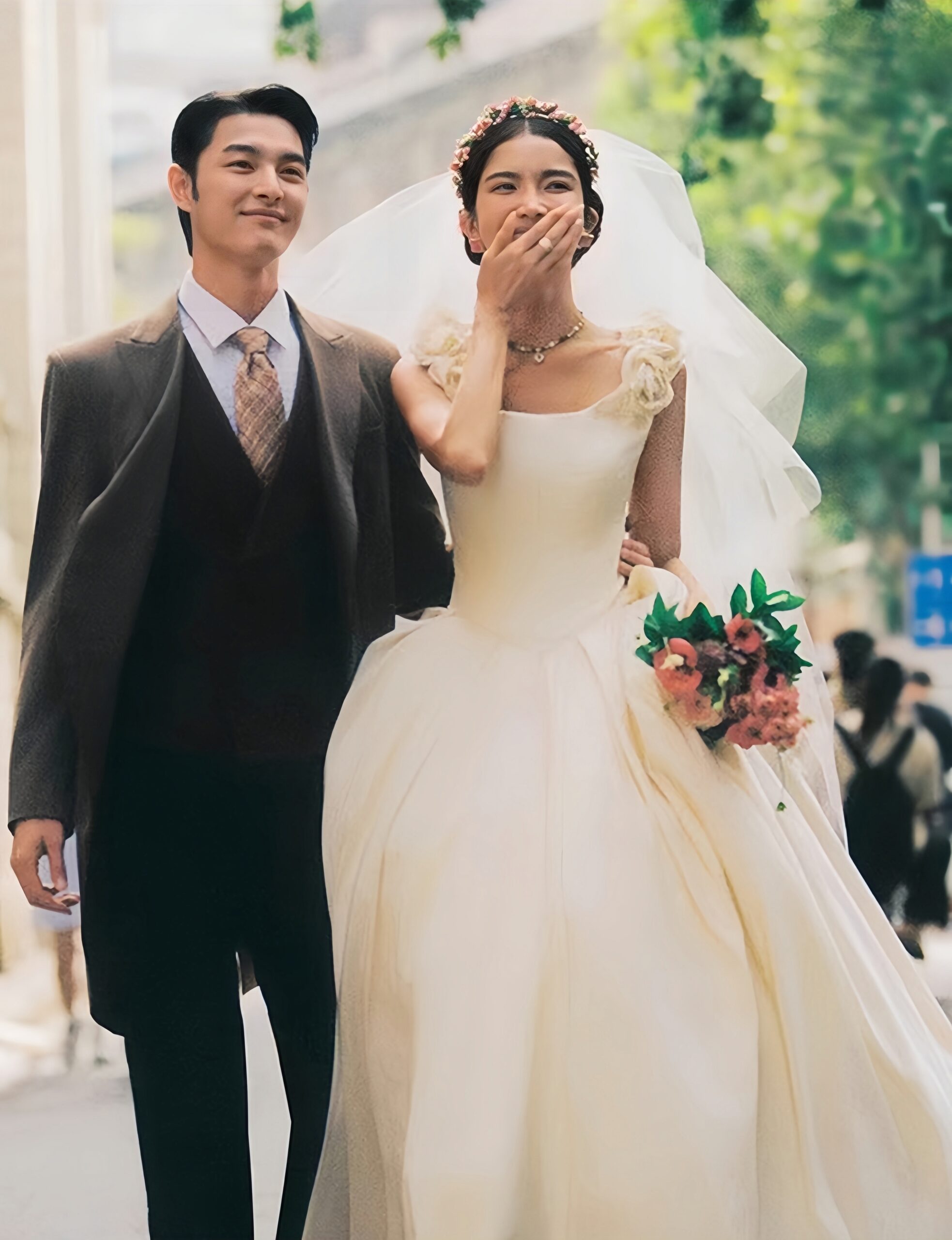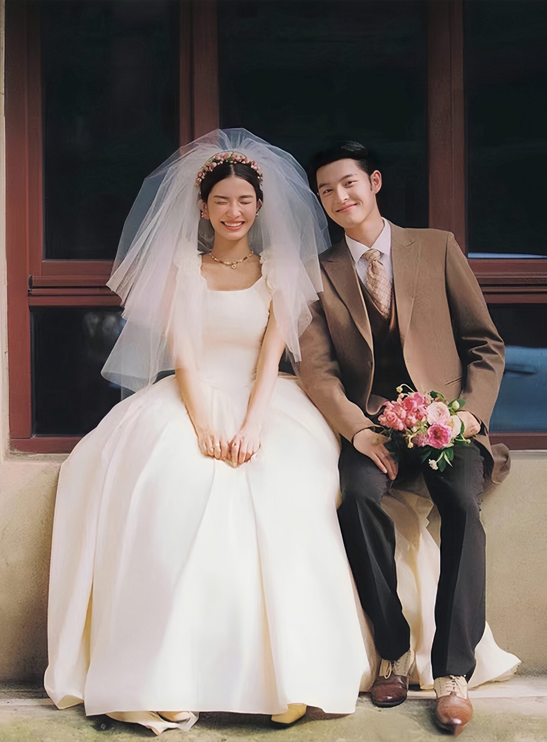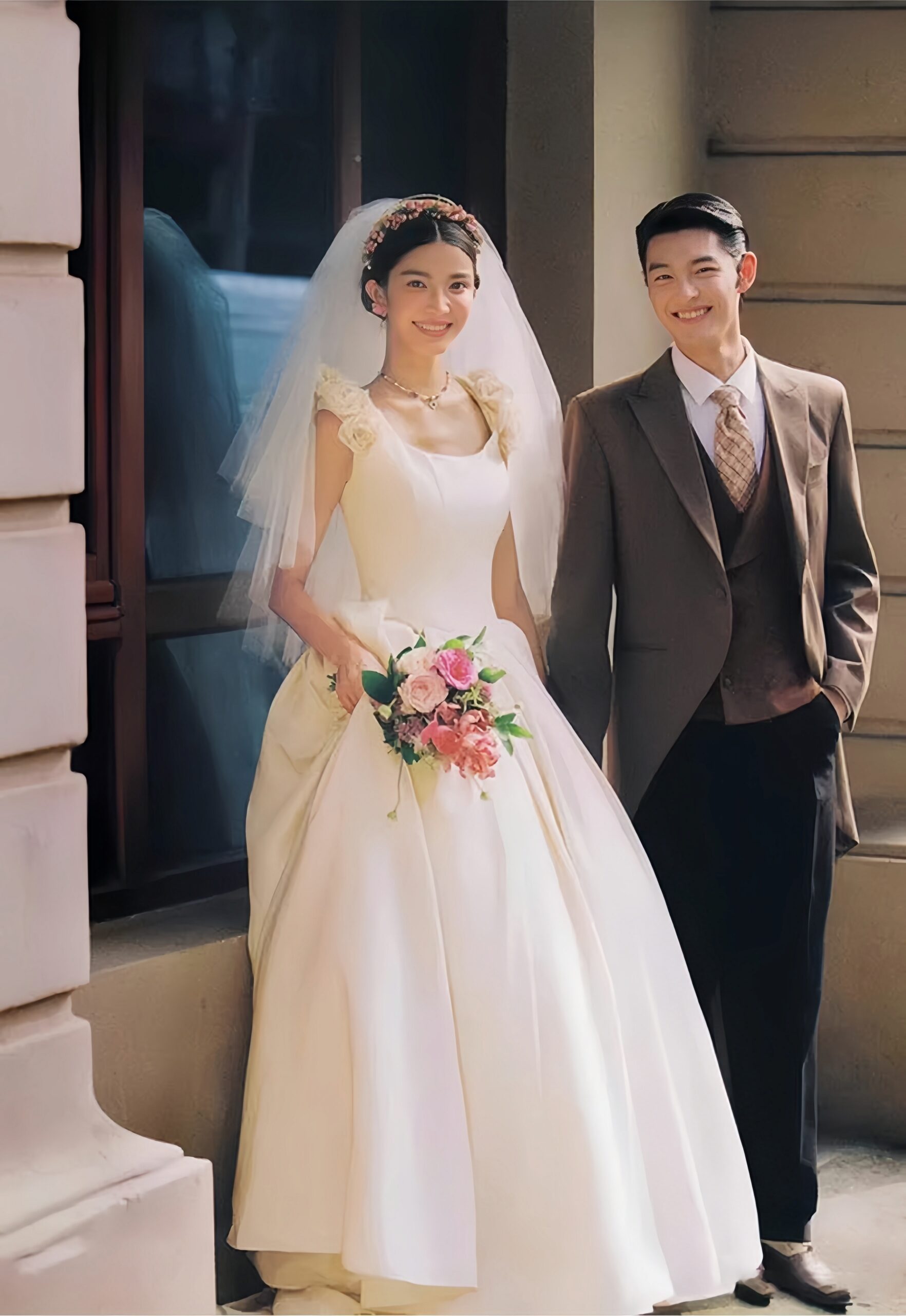【Luz】 Satin Sue Youth-2025 French Hepburn Style Light Wedding Dress Z0032