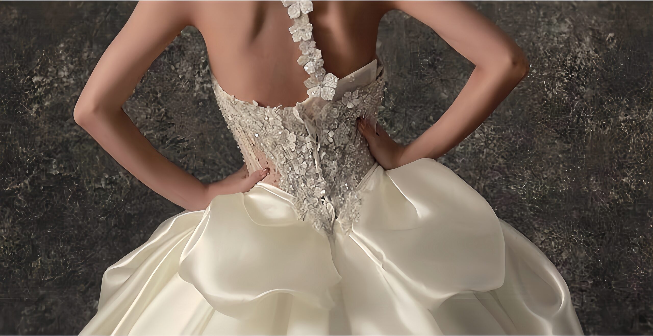 It’s the flowing sheen of satin, the contours of a halter neck and the quiet, stunning moment of turning