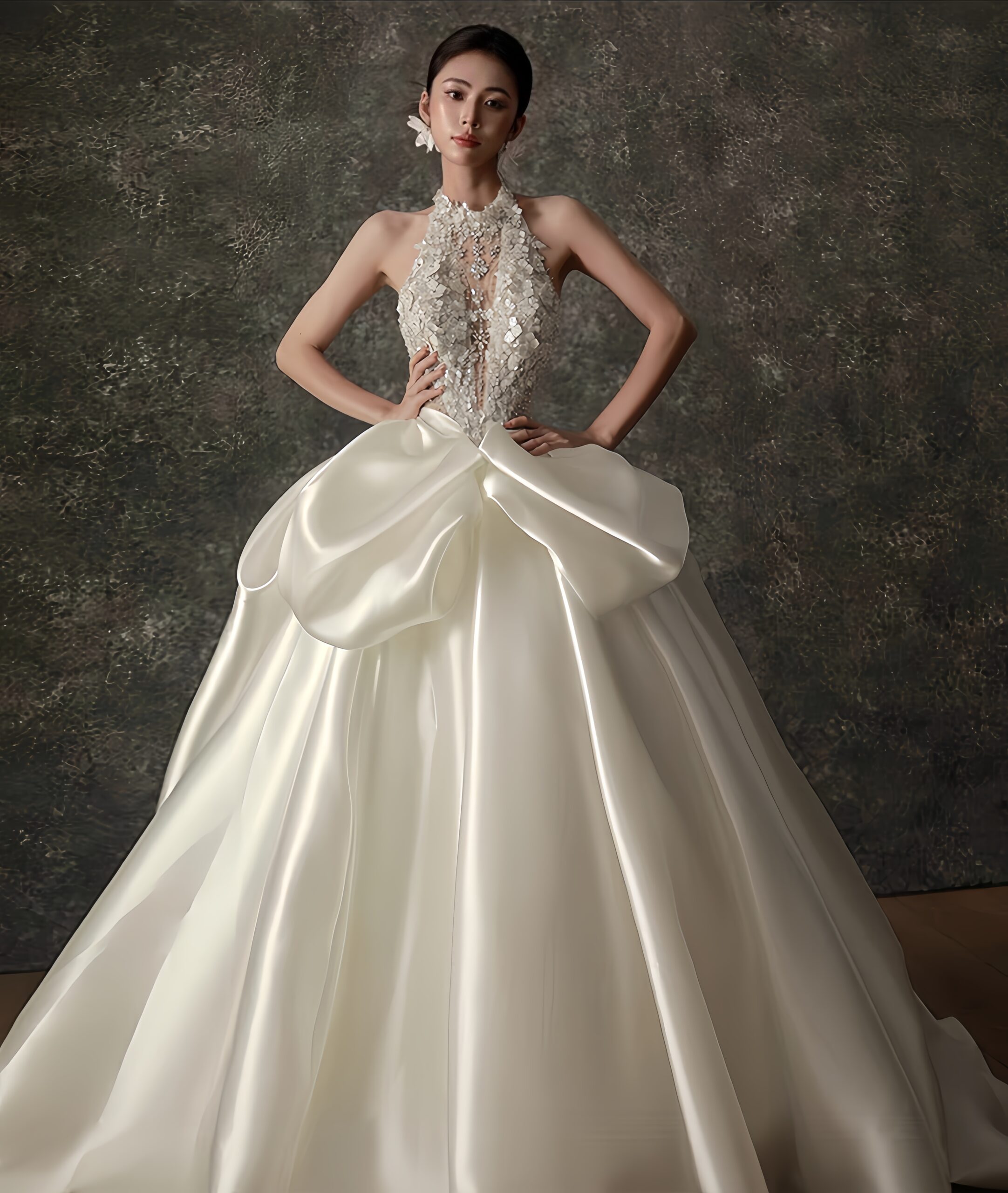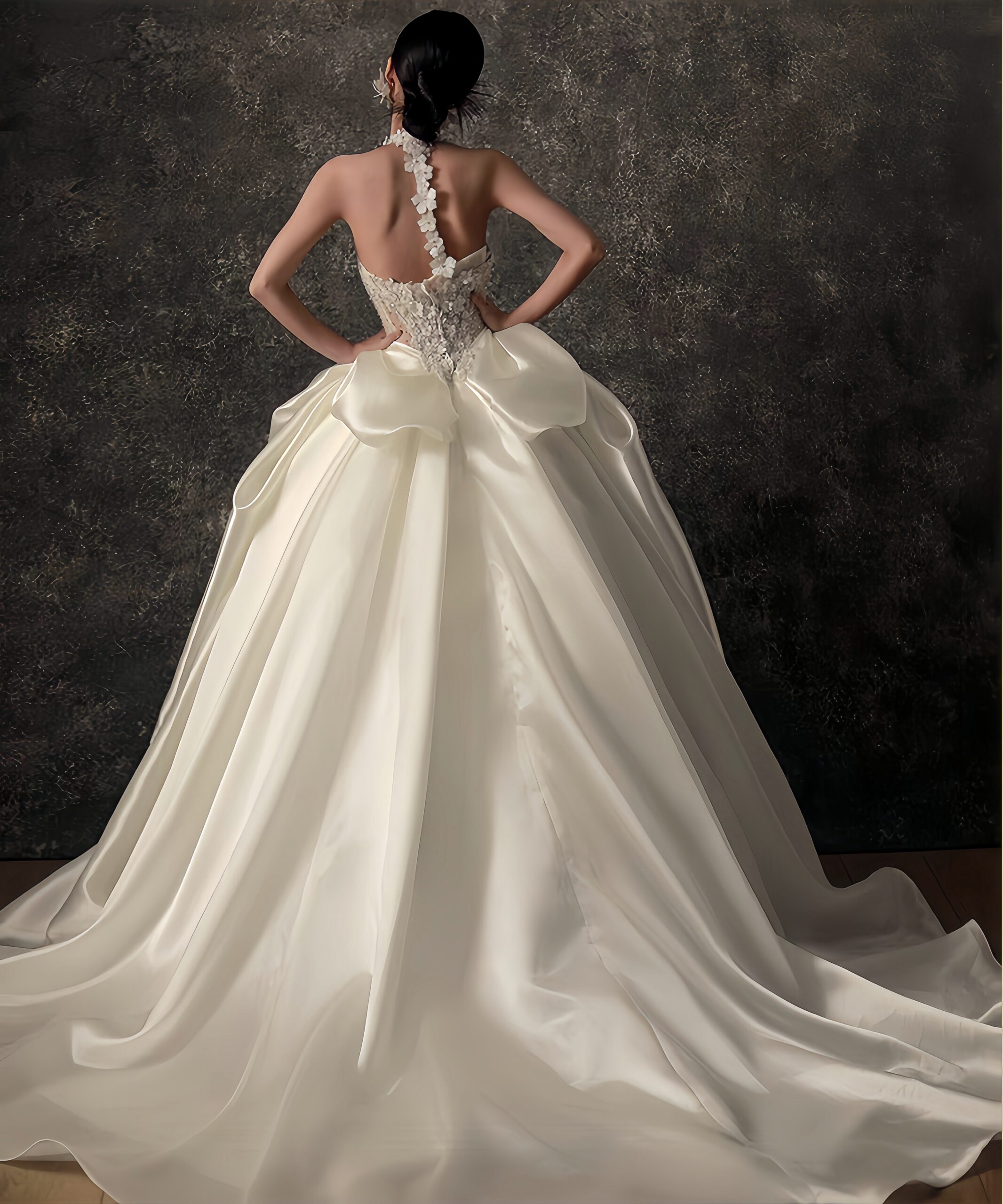 【Luz】French style halterneck palace retro wedding dress Z0013