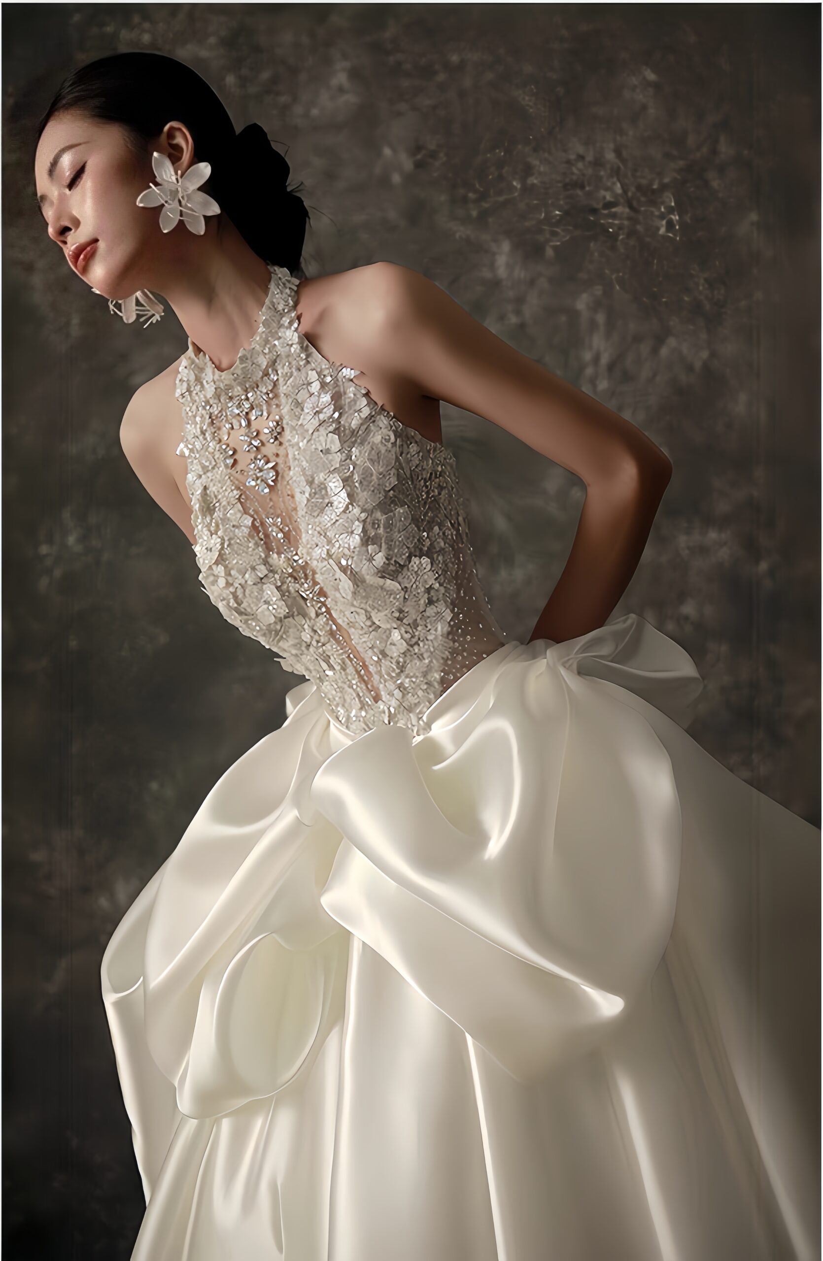 【Luz】French style halterneck palace retro wedding dress Z0013