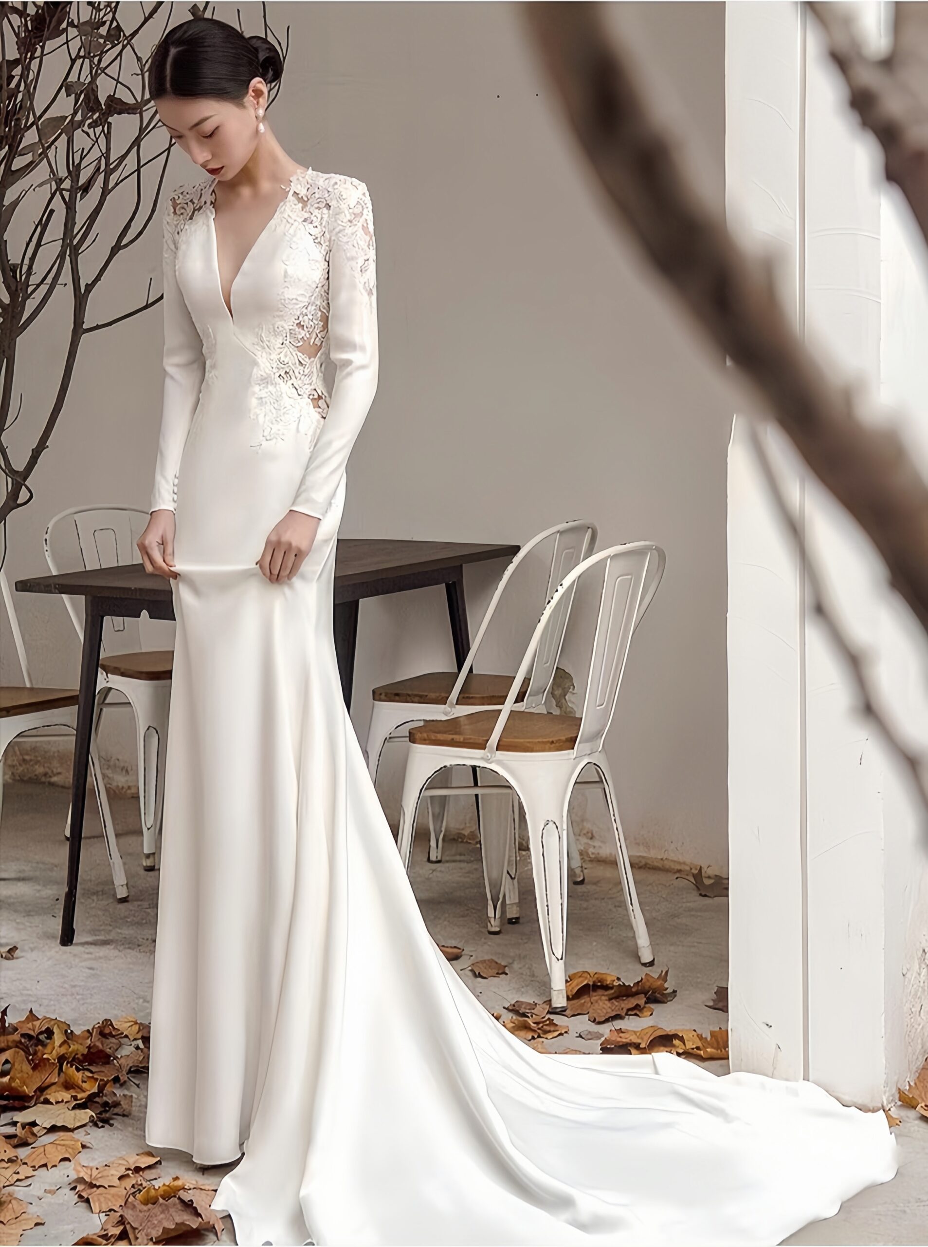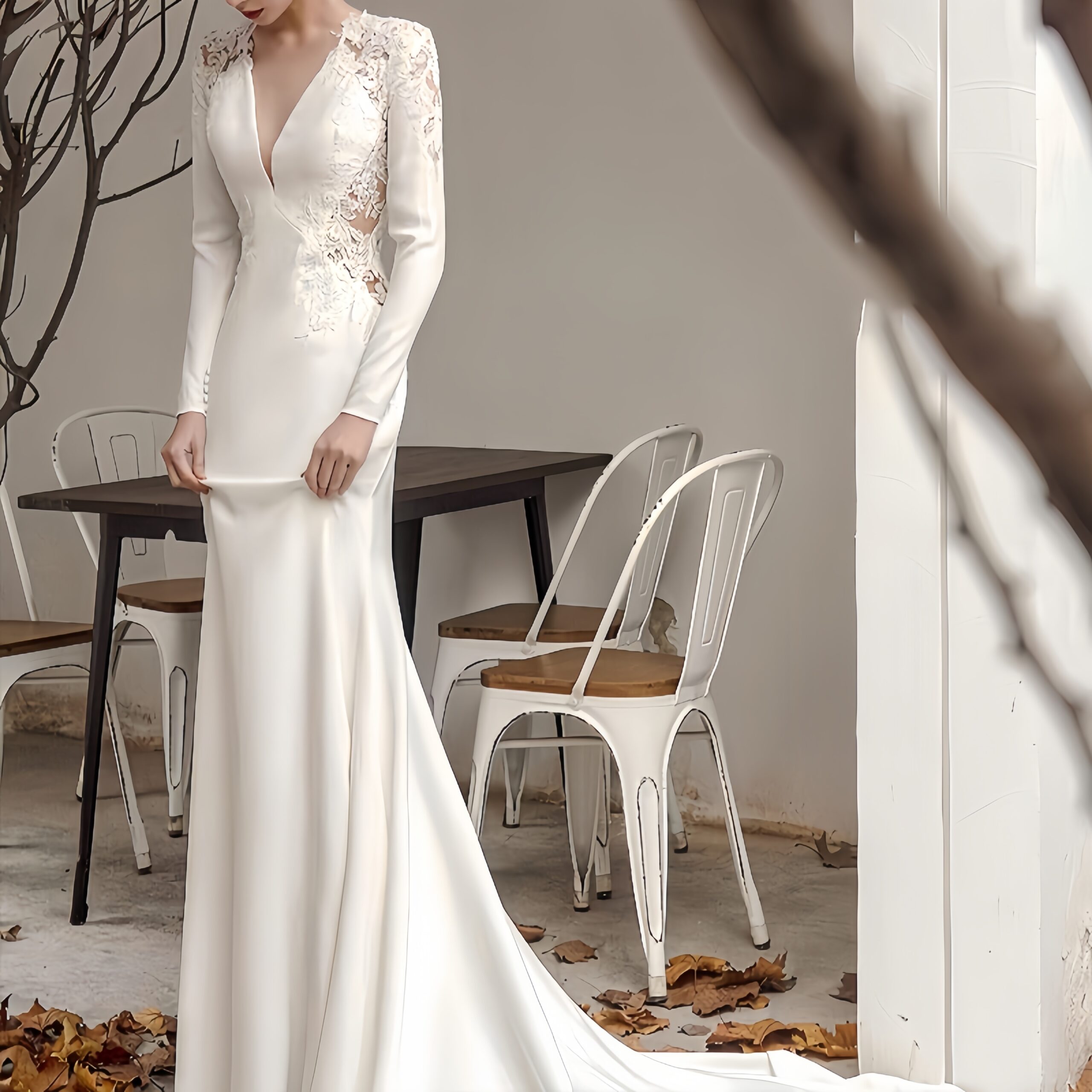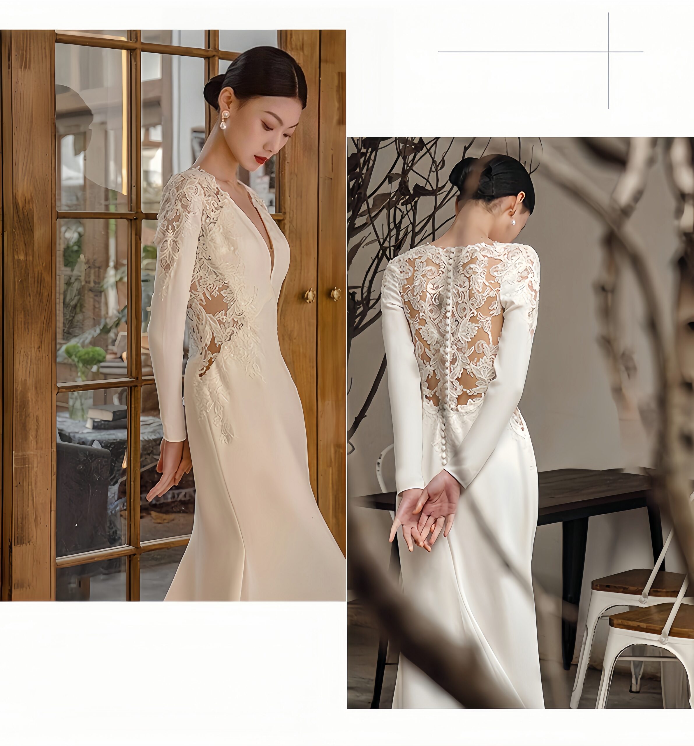 【Luz】High-end satin V-neck lace backless mermaid dress Z0017