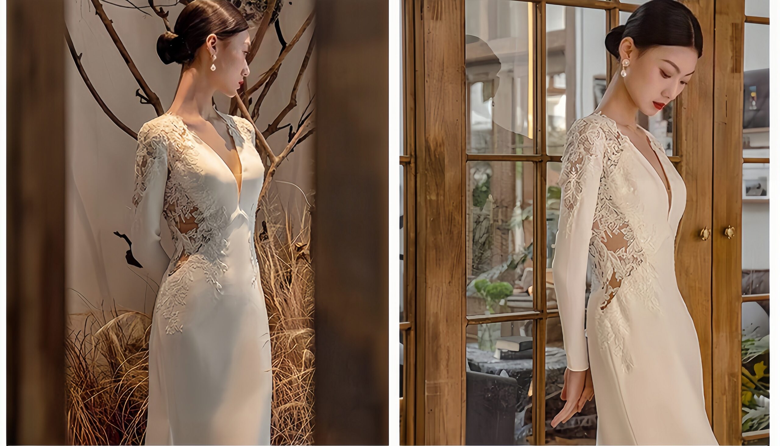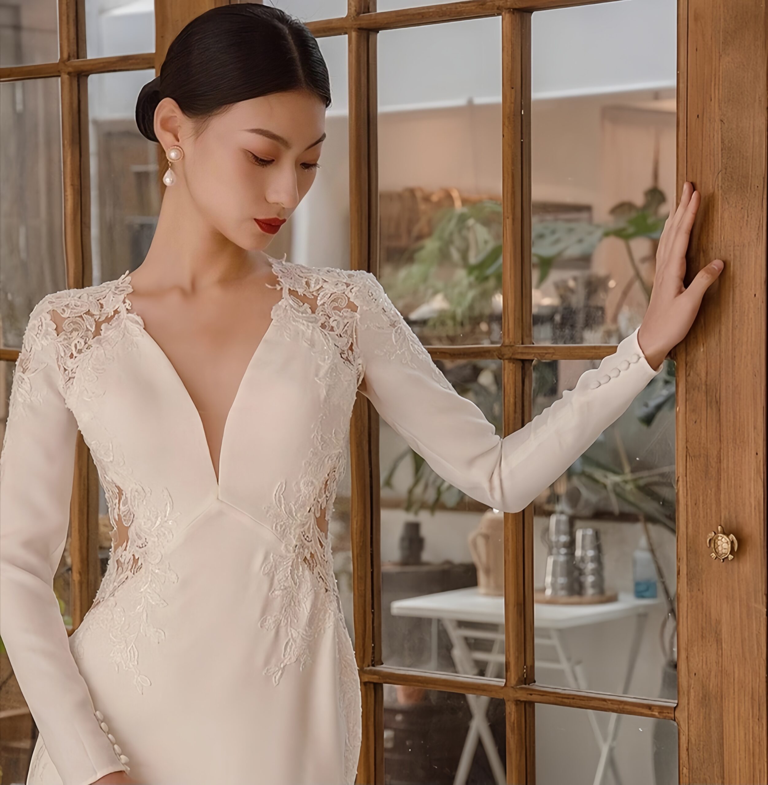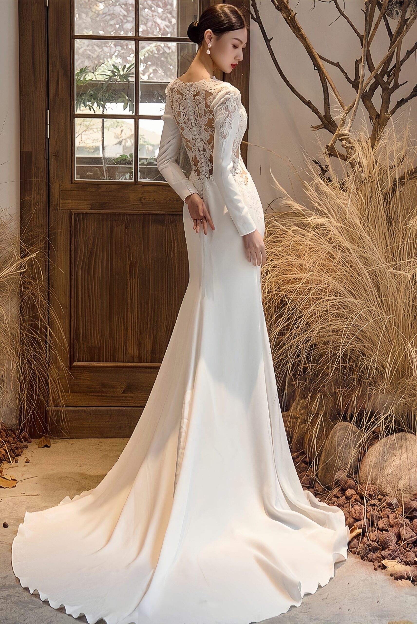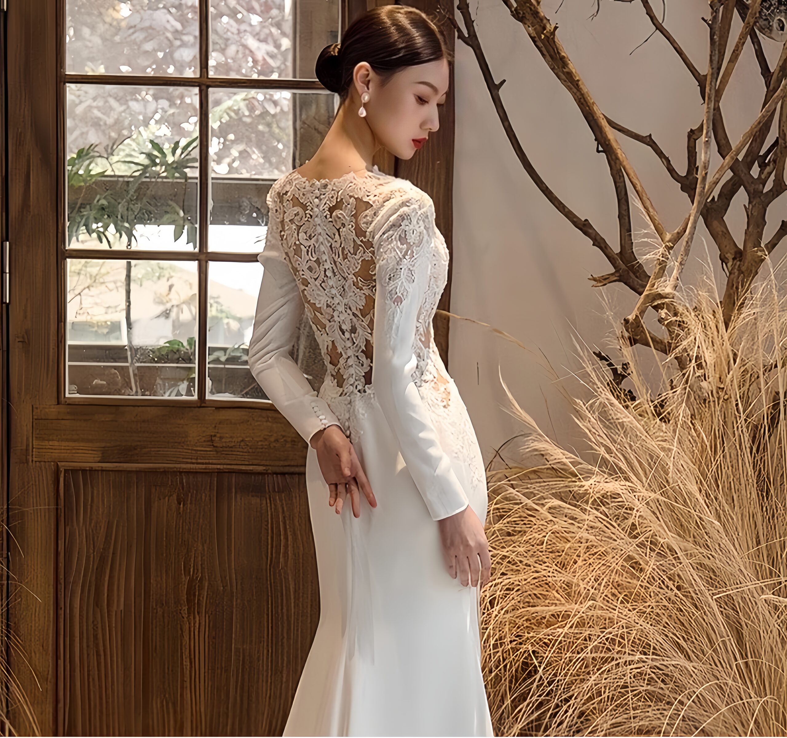 【Luz】High-end satin V-neck lace backless mermaid dress Z0017
