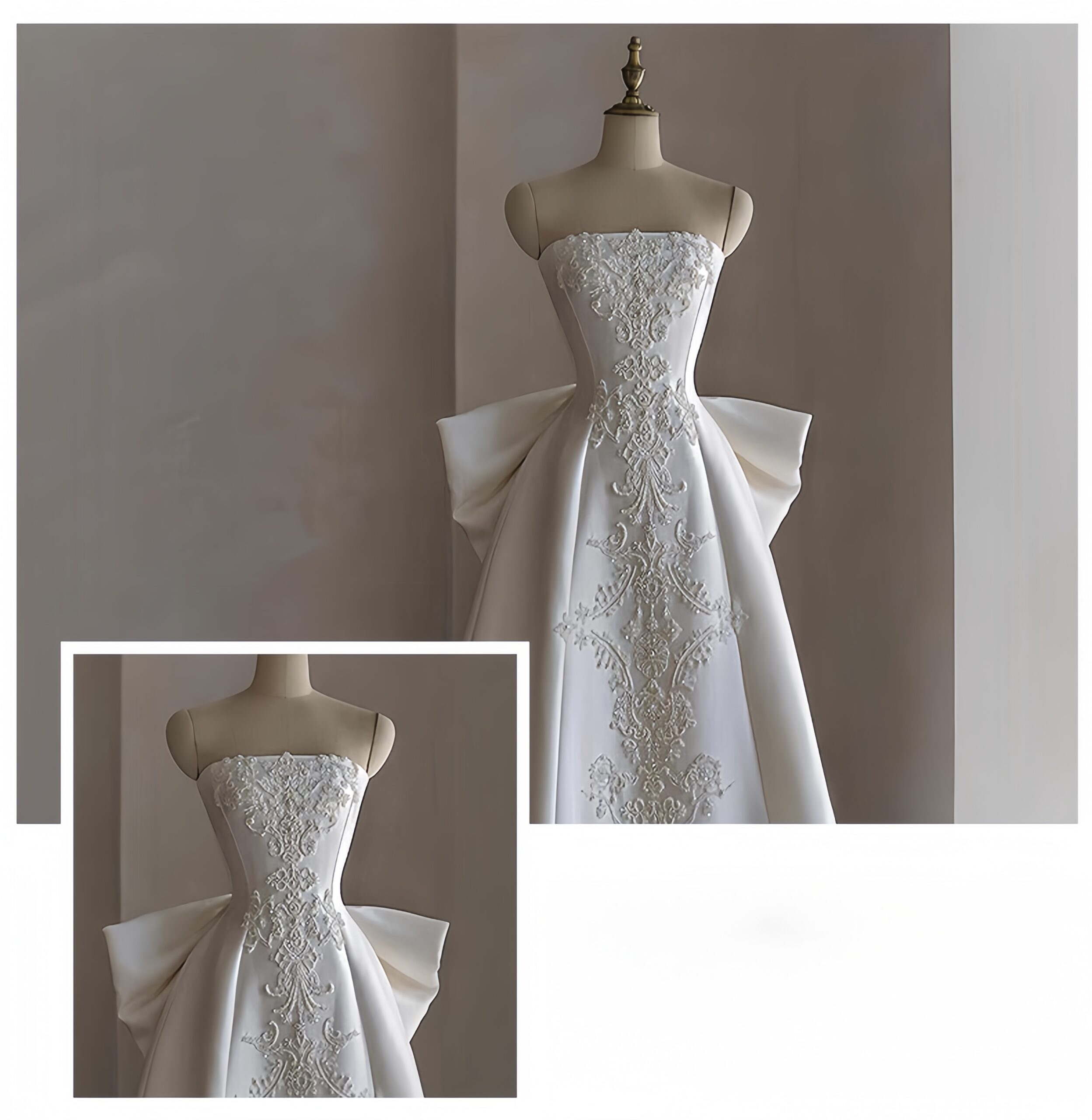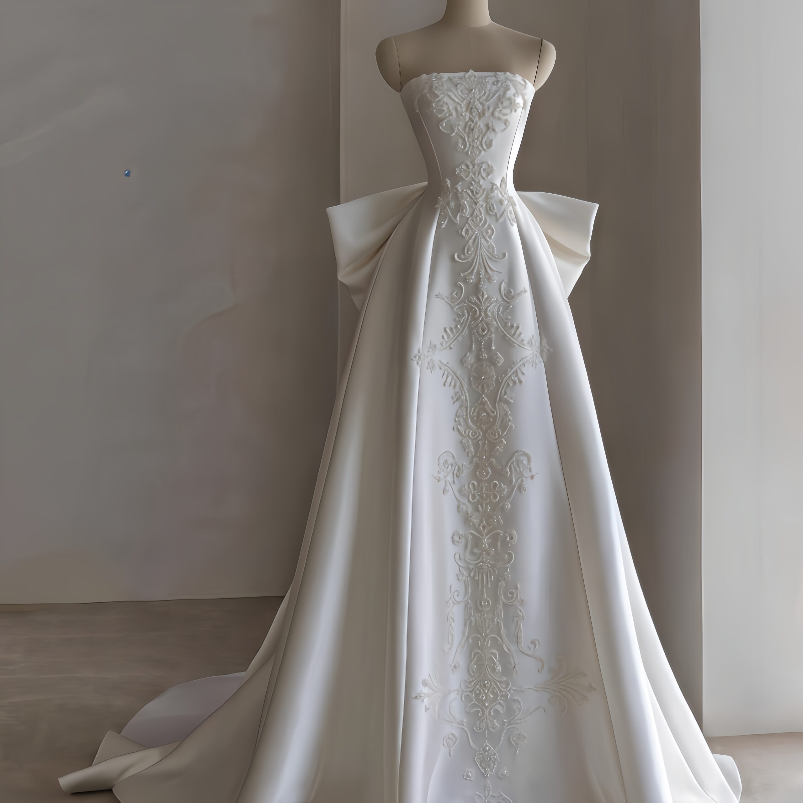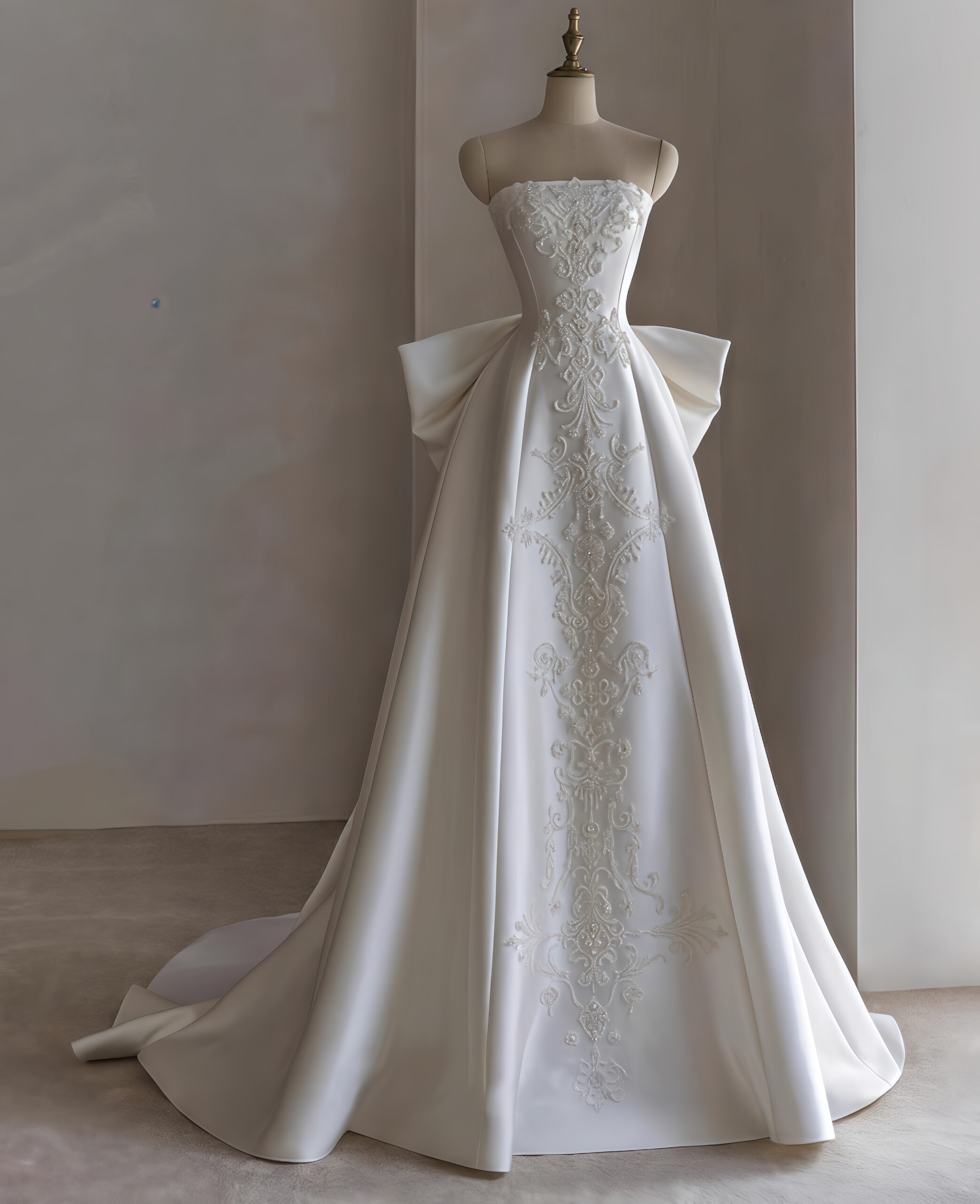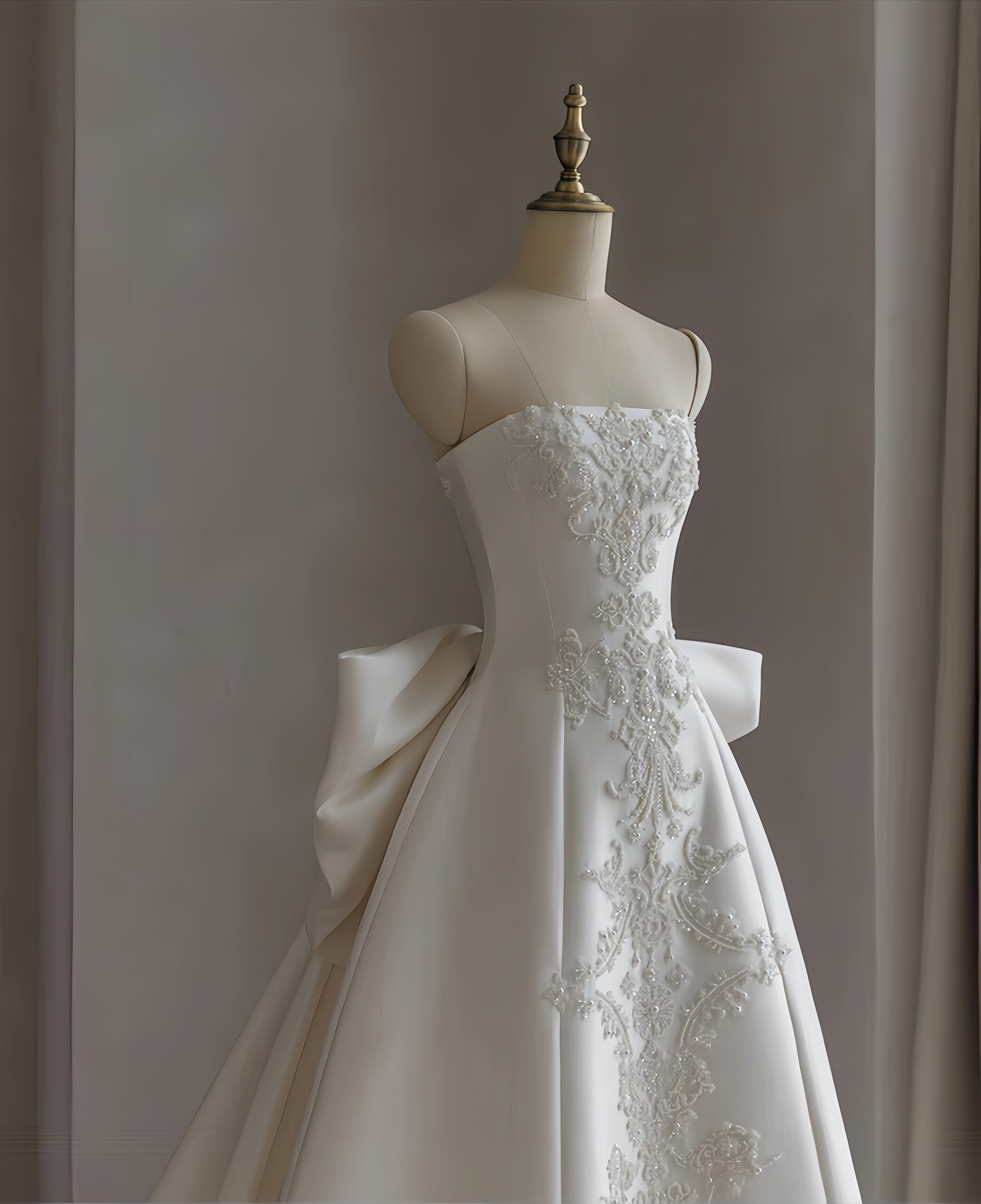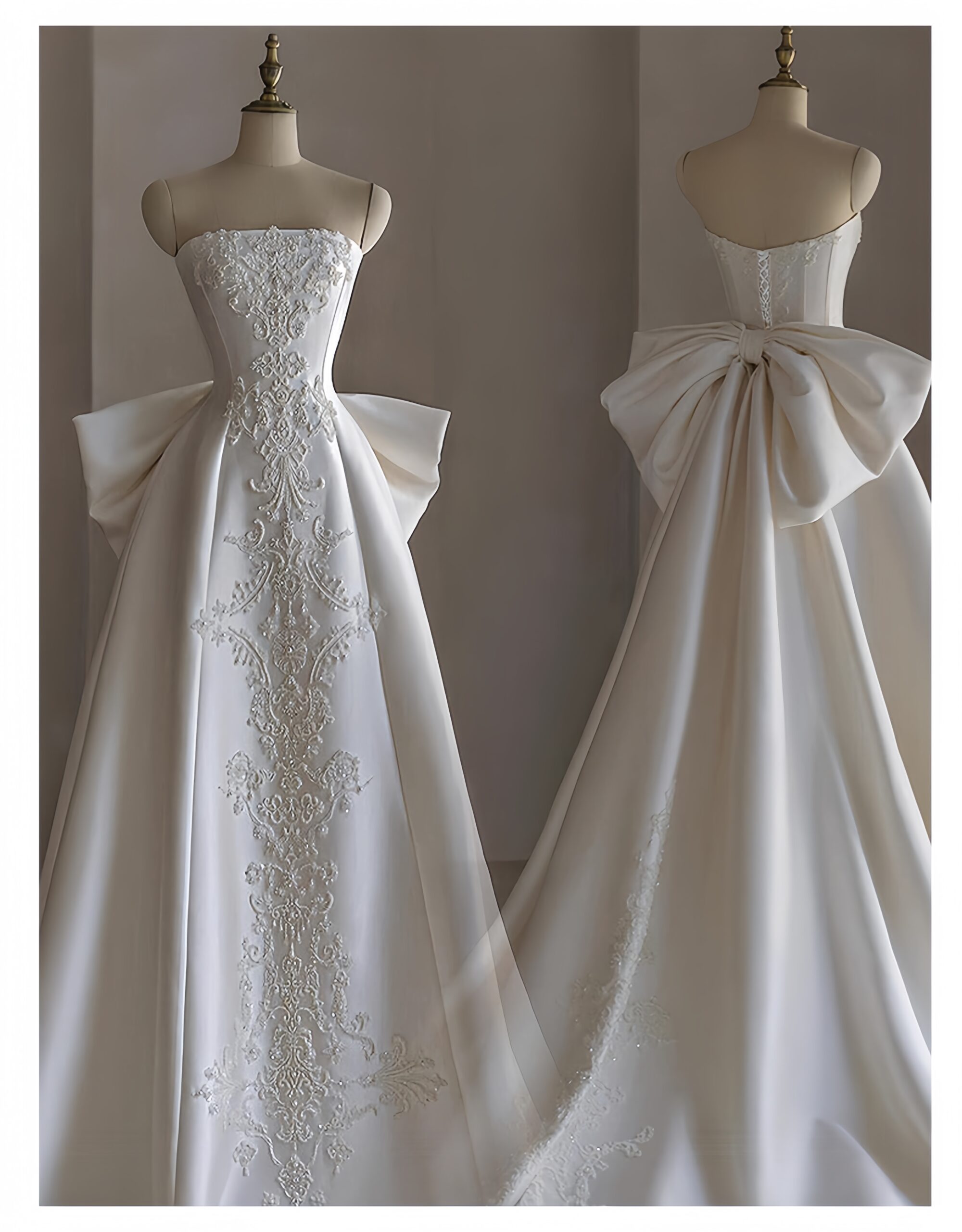 【Luz】Strapless satin wedding dress 2025 new style-high-end texture Z0005