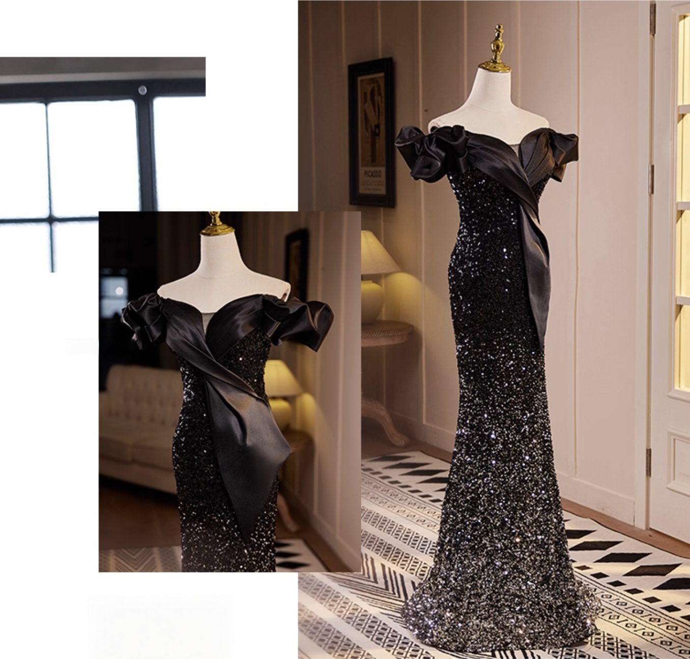 Selected premium composite satin fabric provides five-star support! Built-in herringbone support and double-layer lining, along with elasticized mesh at the waist and abdomen, create a slimming effect while achieving the stunning “supermodel look.” All sequins are EU-certified and will resist rubbing even after repeated wear, ensuring they sparkle even when you spin 360° on the dance floor.