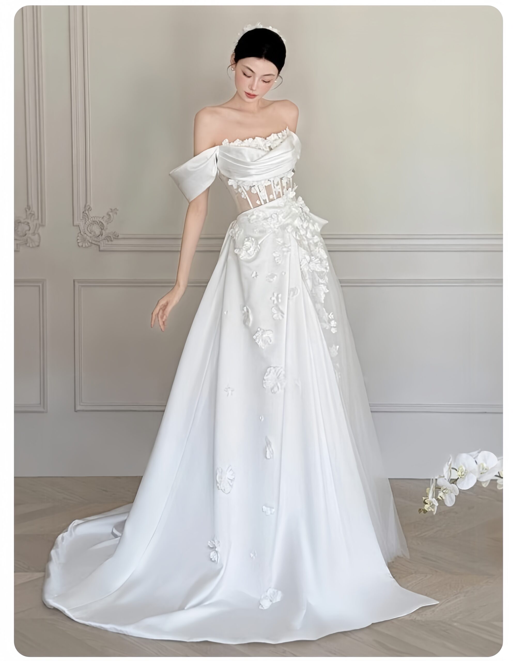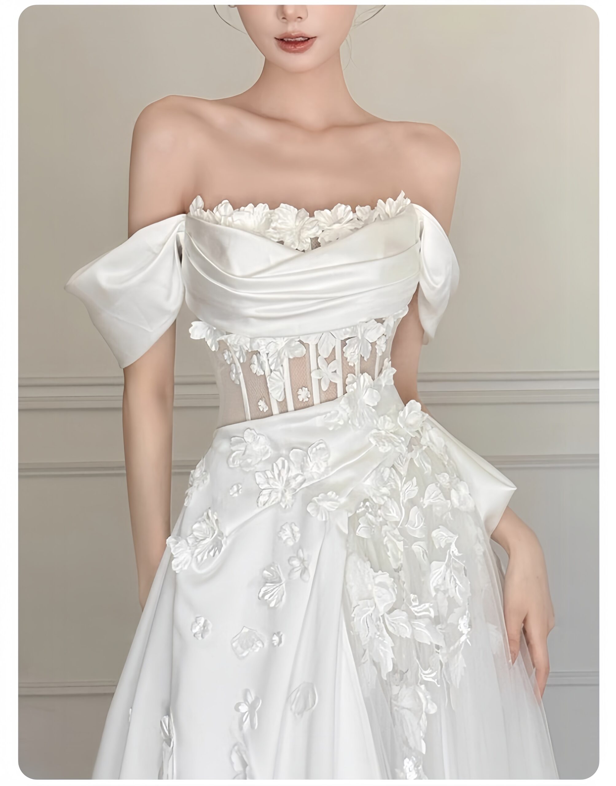 Like a fairy among flowers, every detail is as delicate as a petal, fresh and elegant, pure and flawless. To create a perfect fit around the waist, a combination of different materials is used, creating a fuller, more flowing, and more graceful hem. The carefully selected high-quality materials enhance the sexy and alluring design, while the single-row, multi-buttoned thread creates a sense of elegance!