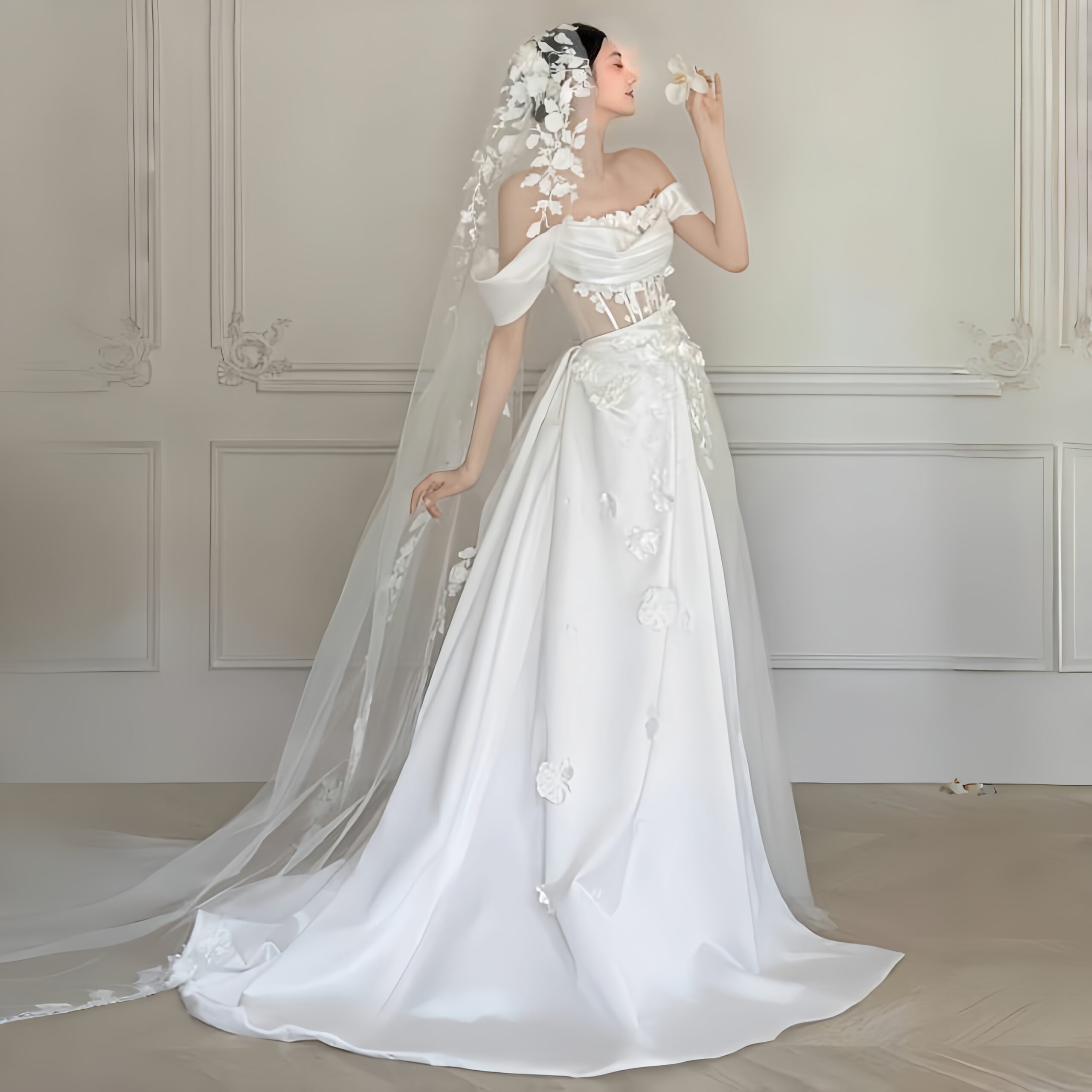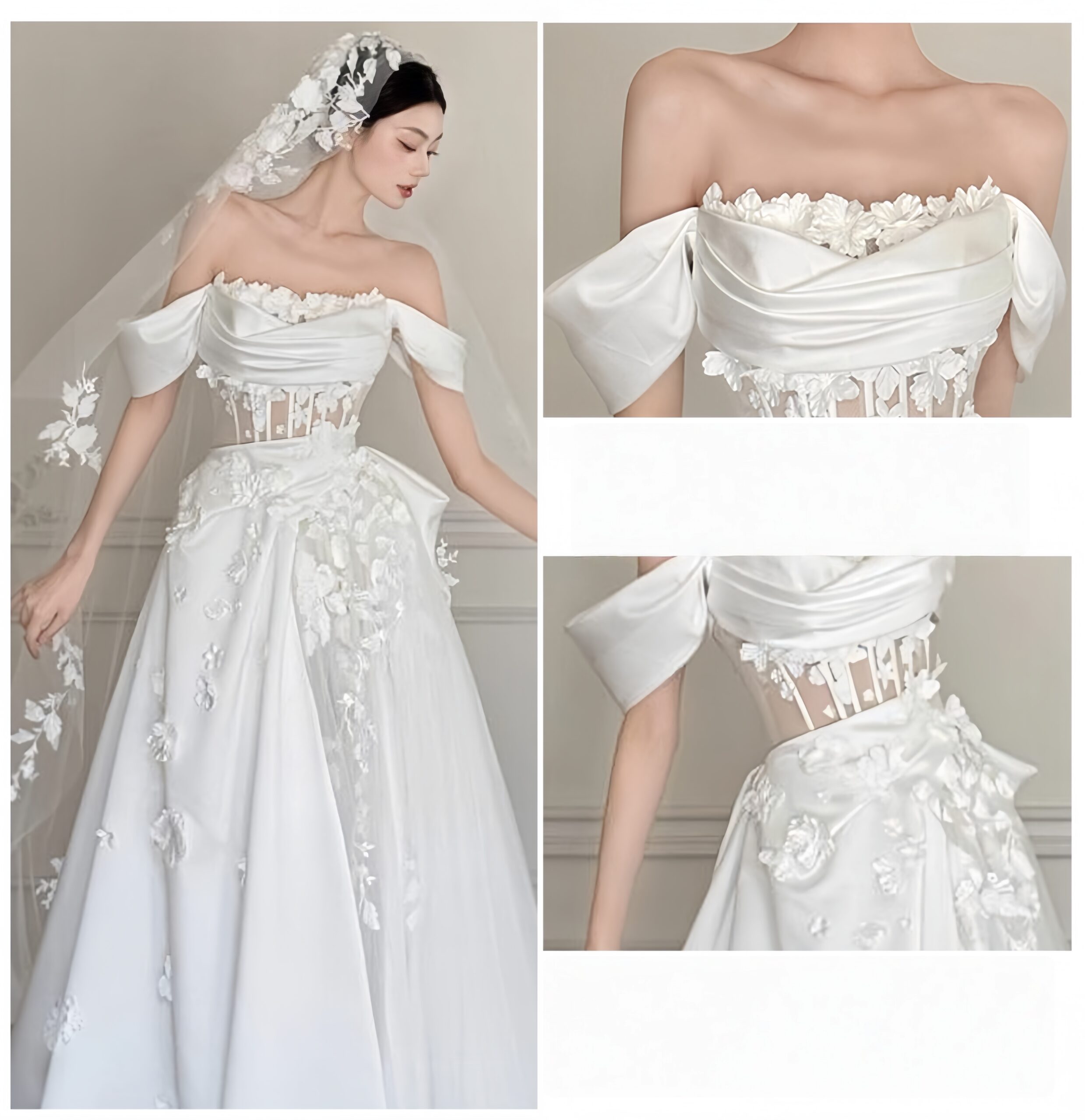 【Reina】Off-shoulder retro lace fairy wedding dress G0040