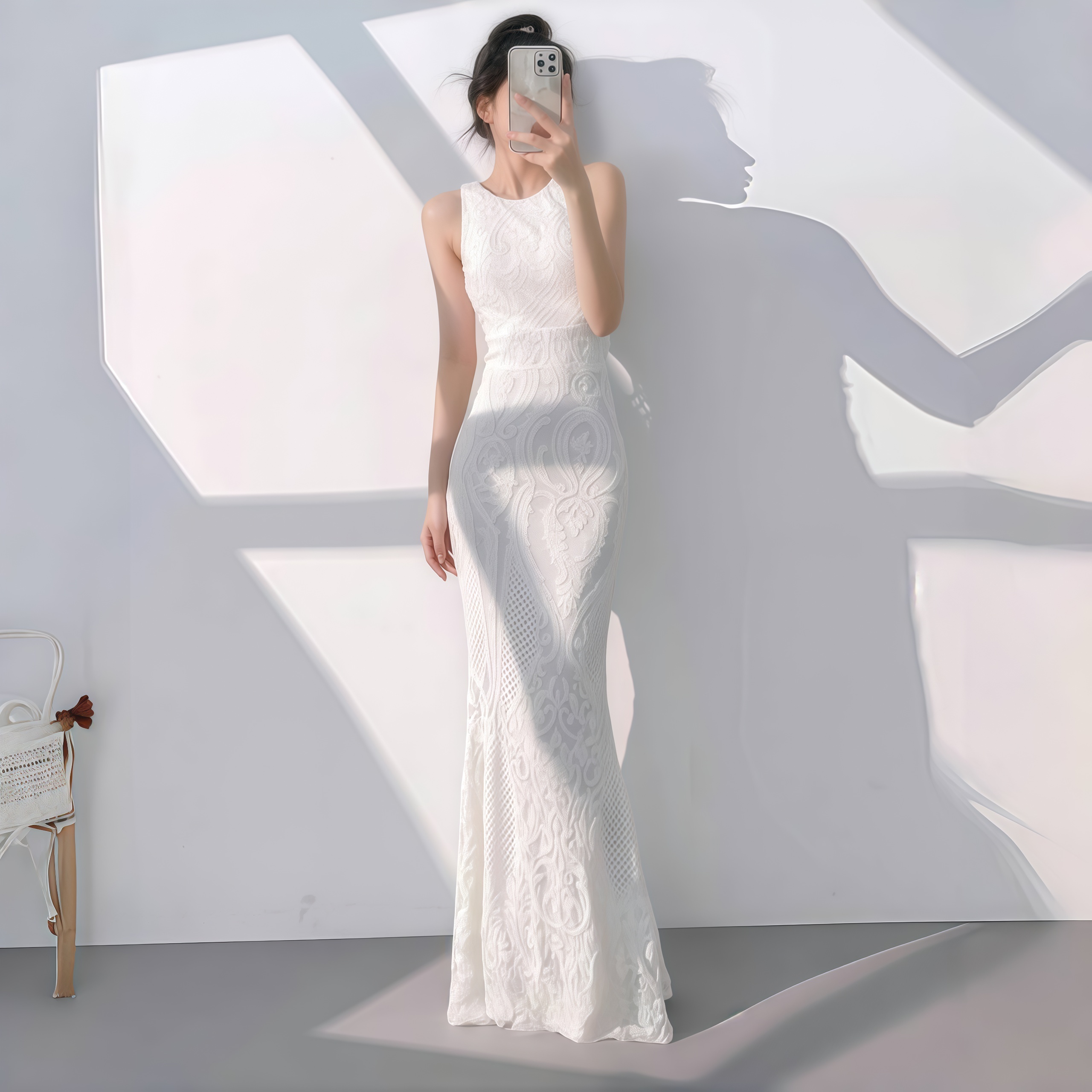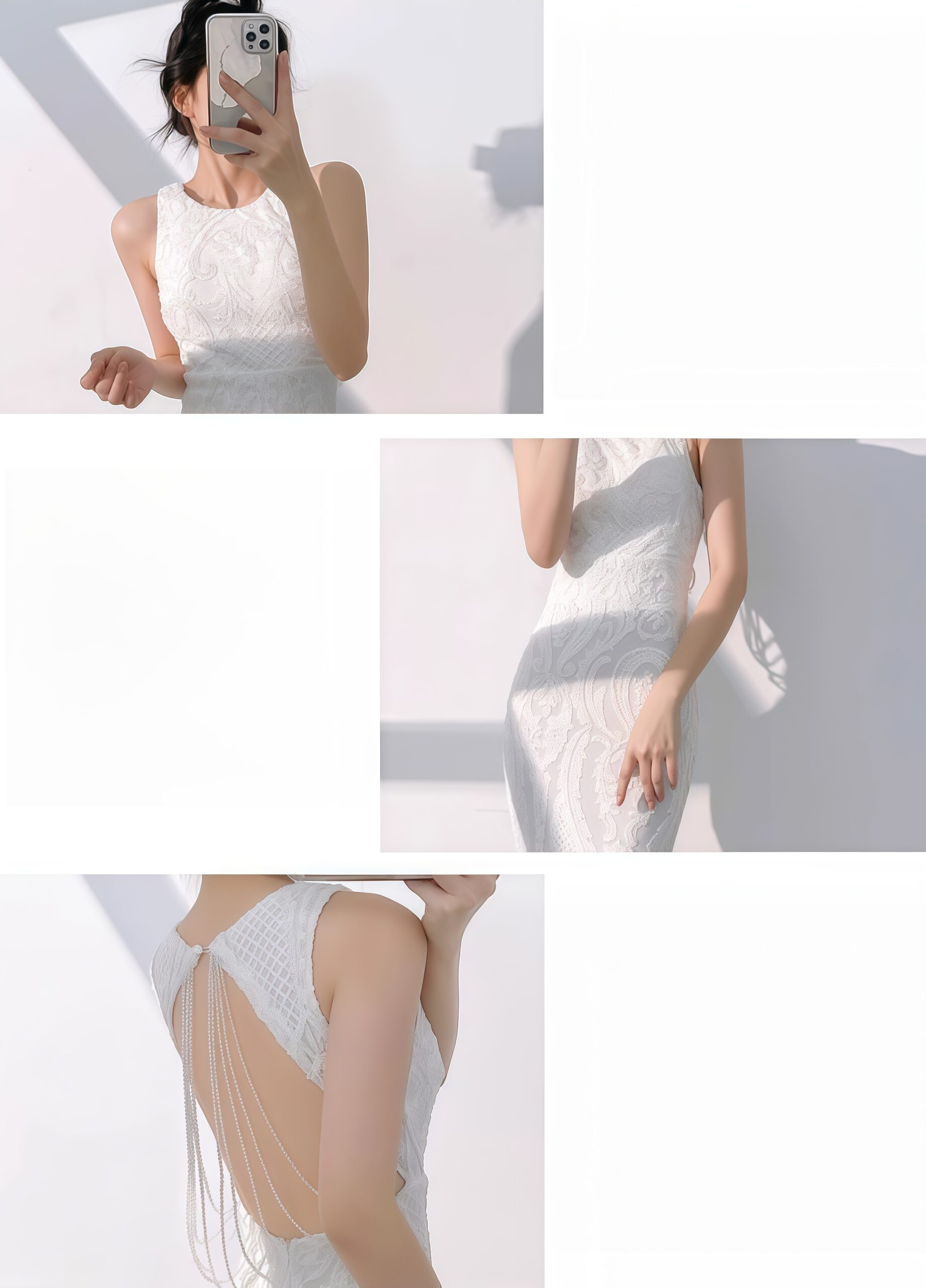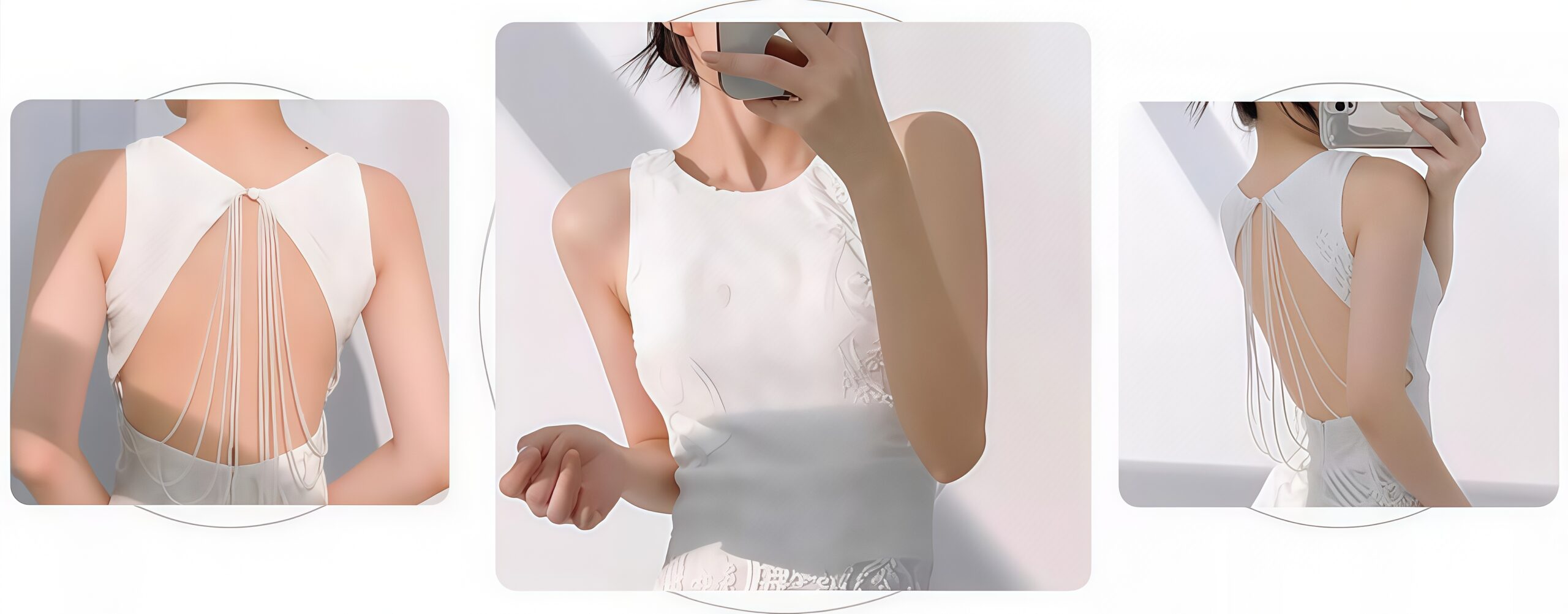 It is a “moonlight container” born for weddings – the sleeveless design reveals the poetic butterfly bones and collarbones, like cutting out a whole piece of midsummer night’s moonlight and gently covering the shoulders.