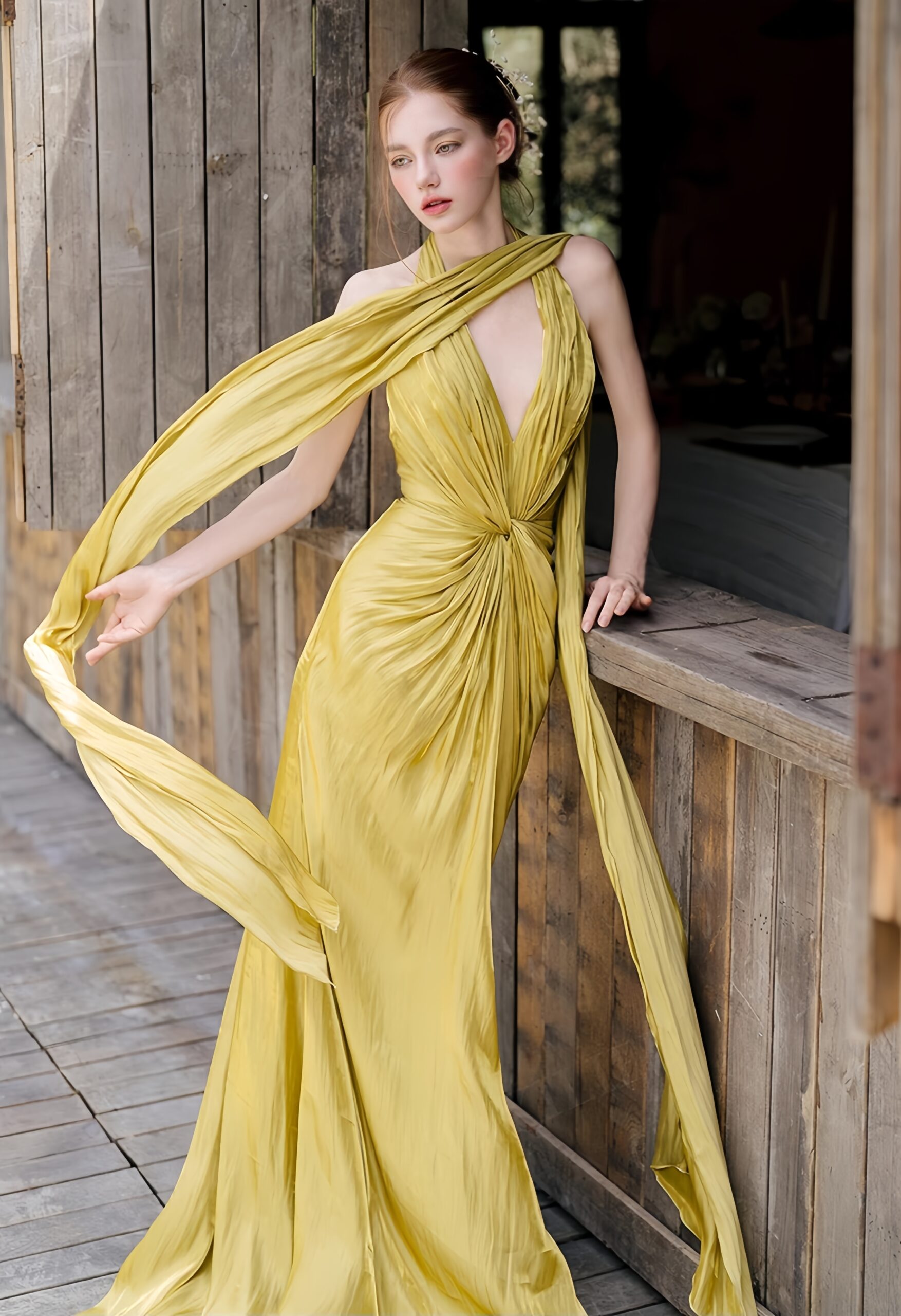 When you grace the stage in this elegant yellow, every step exudes luxury, and every moment becomes a classic